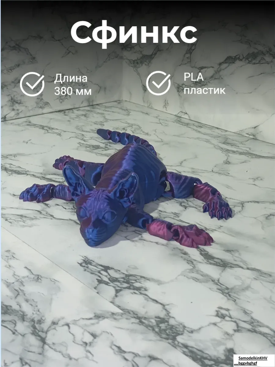 Представляем вам уникального кота сфинкса из PLA пластика – прекрасный сувенир и оригинальный подарок для любителей кошек и коллекционеров! Этот подвижной сувенирный кот выполнен с особым вниманием к деталям и идеально имитирует настоящего сфинкса как по внешнему виду, так и по текстуре. Изготовлен из экологически чистого PLA пластика, этот кот не только прекрасно выглядит, но и безопасен для здоровья и окружающей среды.